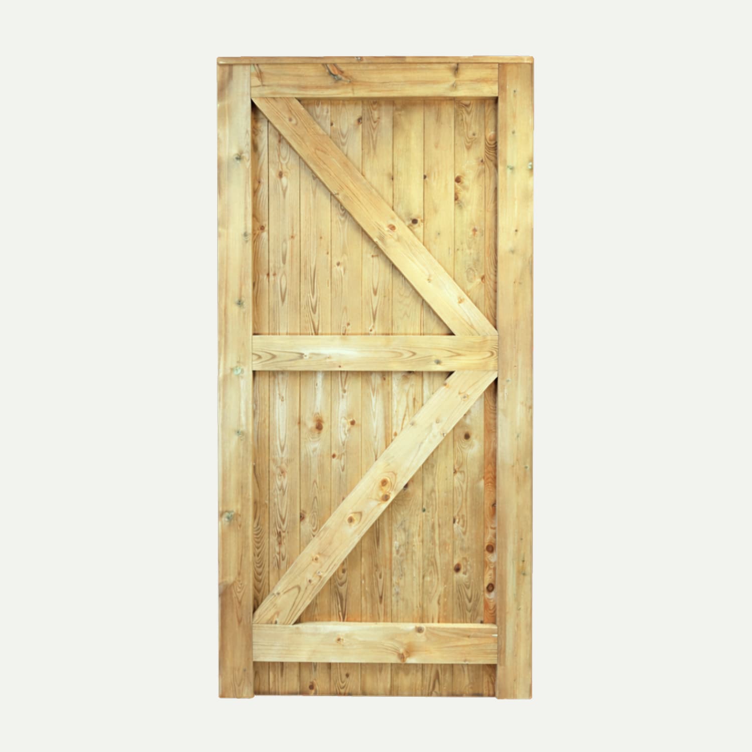 Manufactured from smooth planed timber, this European-style gate offers a refined appearance while maintaining robust construction standards. Unlike standard ledged and braced gates, this design provides a more rigid and fully enclosed structure.